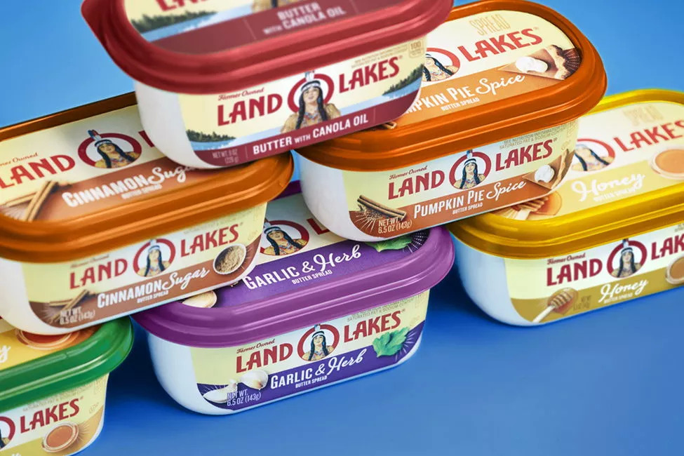 Land O'Lakes是美国最大的奶油和奶酪生产商之一。如今,品牌已经生产了近100年的黄油。此次全新的设计架构使得原包装上的少女转变成为真正的品牌形象大使,并包含了Land O'Lakes作为农业合作社与农民、土地和社区的联系。