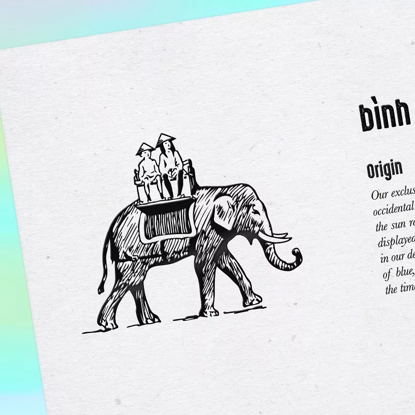 标签使用来自越南的经典元素——宣纸质地,增强了本土和自然的概念。插图和部分文字采用高浮雕和半透明清漆,以突出产品的细节。在包装的底部,用突出的浮雕文字强调Binh品牌,赋予其极简主义的风格,每个细节都讲述着品牌故事。这种设计带来了独特而感性的时刻,在这里,灵魂与自然之间产生了联系。一种可以闻到、听到和感觉到的设计。