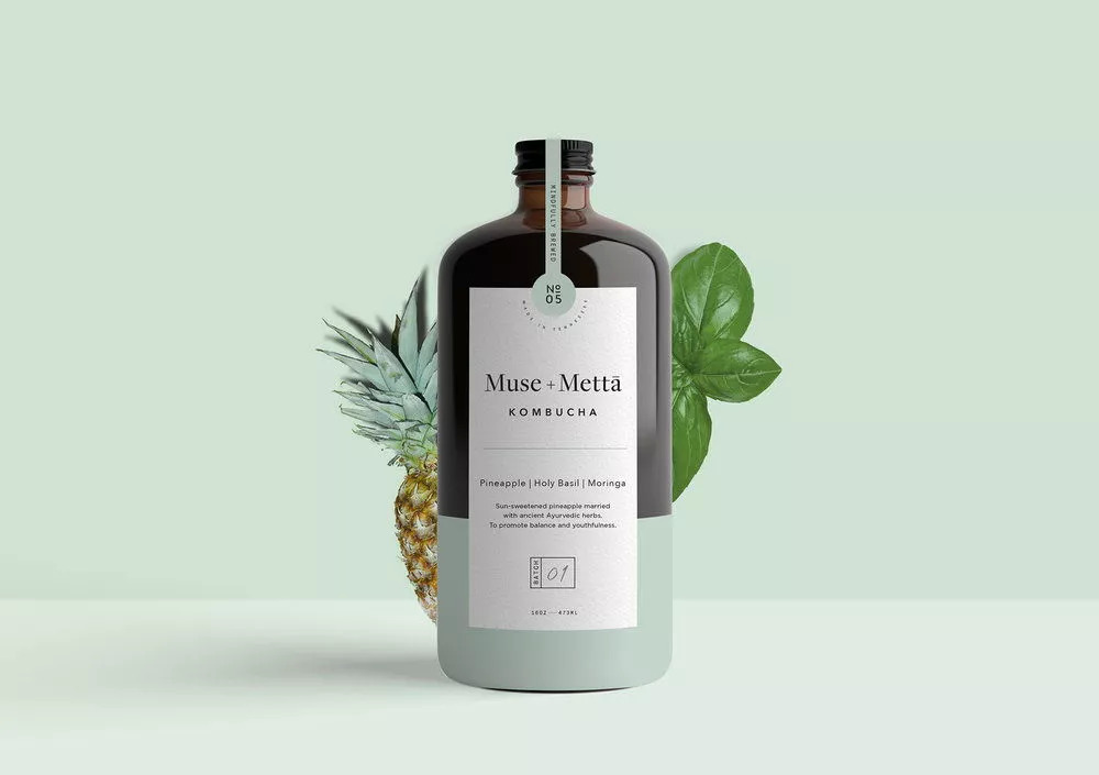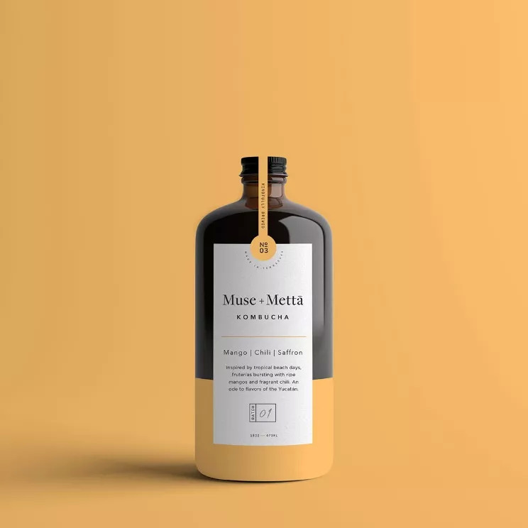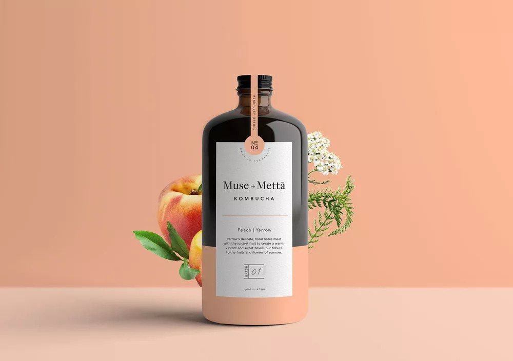 Kati Forner为康普茶品牌Muse + Mettā设计了这个简约风格的精致包装。Muse + Mettā不仅仅是一种饮料,它代表了追寻健康、艺术和无限可能性的文化。这款饮品选用来自世界各地的水果、鲜花和草本植物酿造,搭配现代感的设计和品牌对健康饮食文化的追寻,创造了独一无二的感官体验。