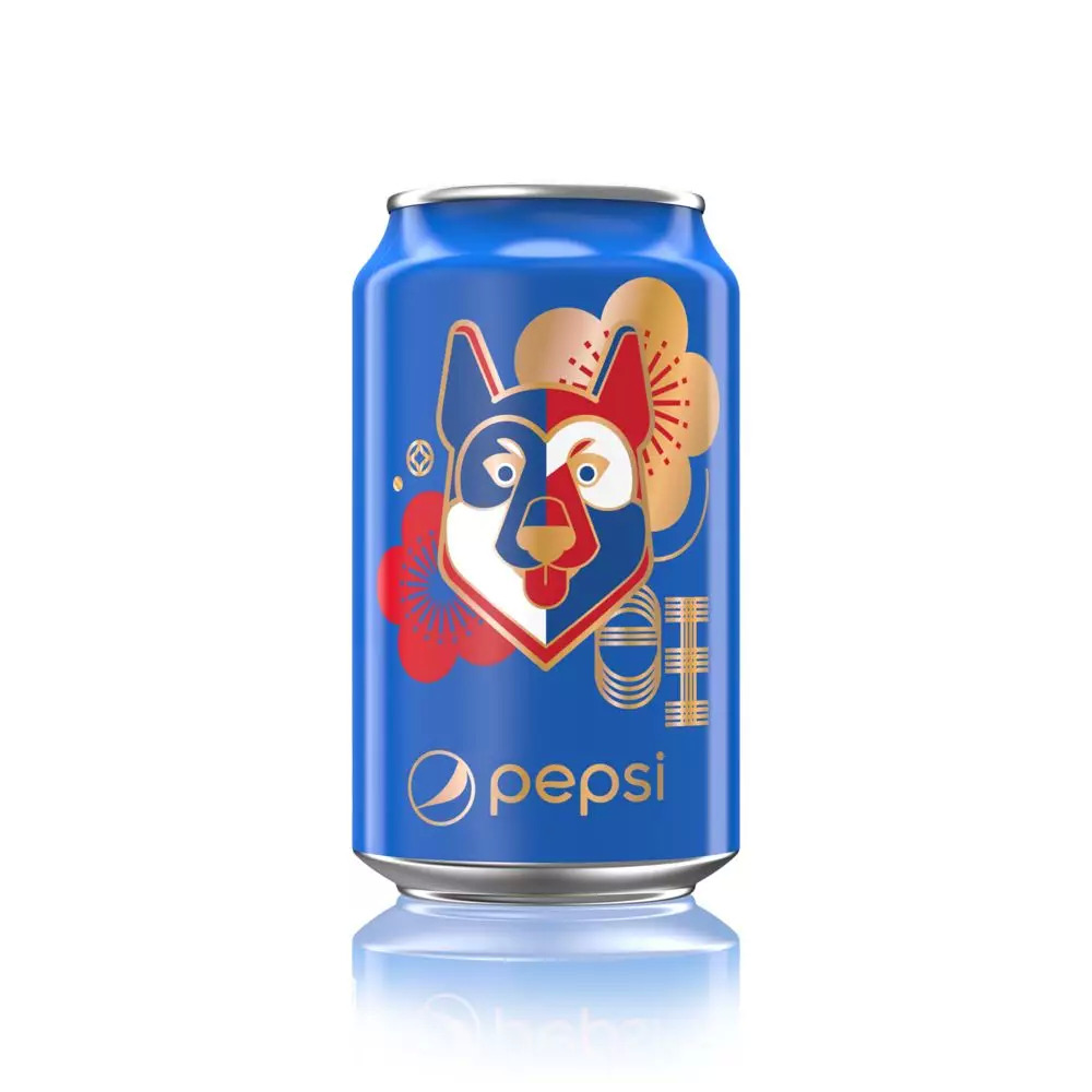 2018年百事可乐为中国春节而特别设计的限量版罐装可乐包装,传递中国传统新年气氛的同时结合百事可乐的精神和“为现在而生活”的态度。中国传统十二生肖之一的“狗”,经过重新设计,形象更具简约性和标志性,加强了图形的视觉冲击力,从而促进消费者产生情感共鸣并达成消费行为。由于这一款产品的购买渠道仅限于电子商务平台,更为百事可乐狗年限量版增加了吸引力,并一跃成为新年庆祝活动中备受追捧的饮品。