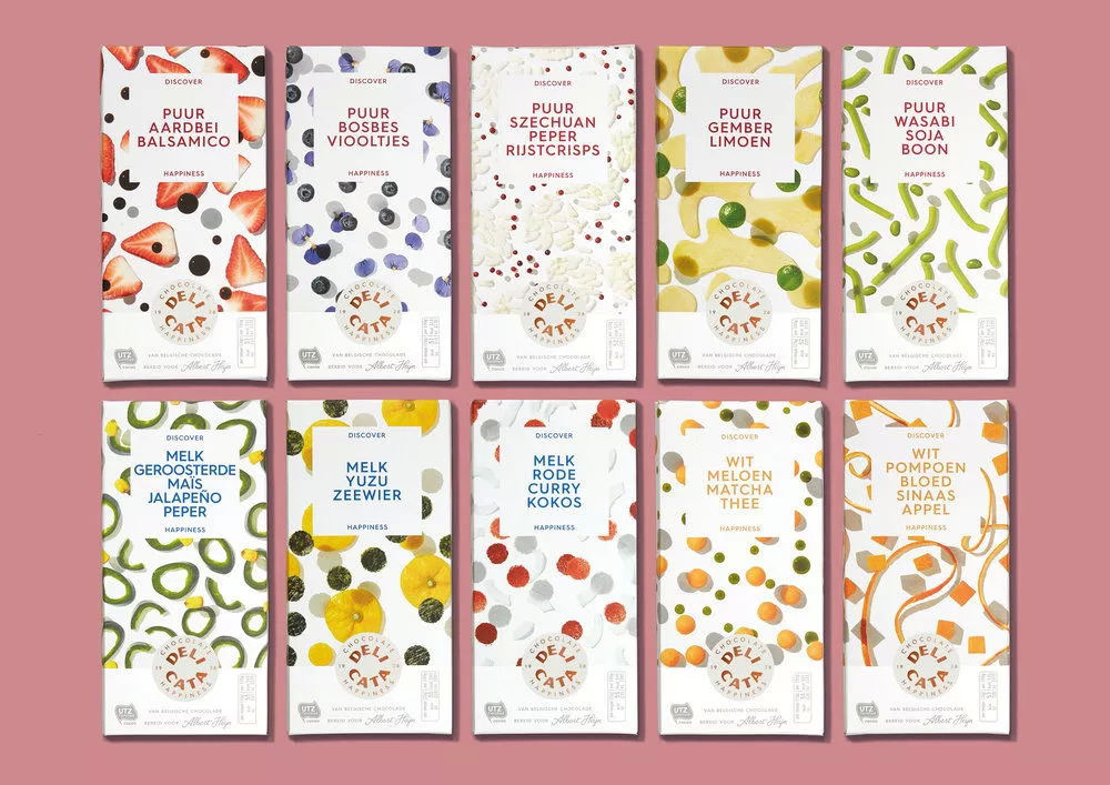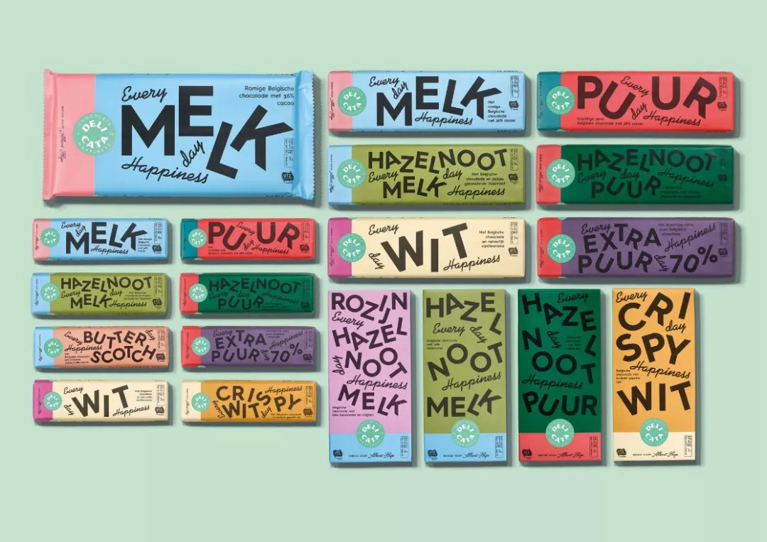 Delicata创立于 1926年,作为传统巧克力生产商,因其合理的价格和优良的品质而获得了长期的良性发展,然而消费者对这个品牌的认知度和偏好度都很少。此次包装的转型将改变品牌的定位,促进品牌形成更高风险和收益的模式,与巧克力类别中的顶级品牌竞争。利用趣味性的颜色和图形,这一动感、时髦的系列包装将帮助产品从货架上脱颖而出。