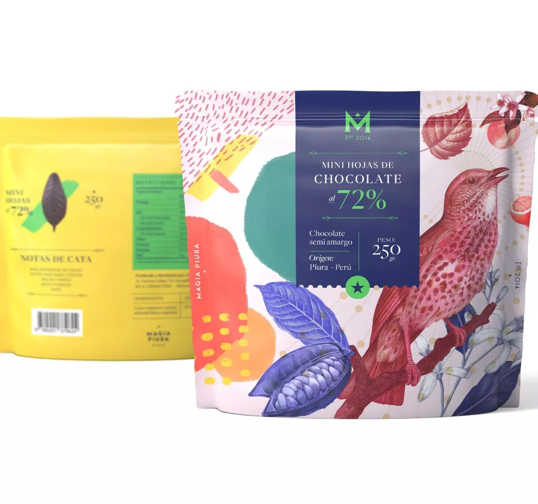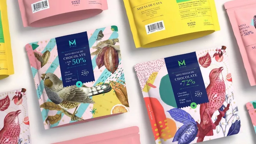 Magia Piura的包装由Alejandro Gavancho设计完成,通过鸟类、植物和艺术图案和抽象设计来展现大自然。Magia Piura总部位于秘鲁皮乌拉,是一家专营巧克力和可可衍生品的品牌。皮乌拉是一个以其神秘主义而闻名的地方,该省的部分地区仍然坚持对萨满和法术的传统信仰。