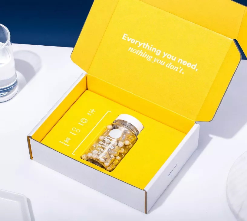 现代消费者希望充分了解他们所购买的产品,作为新兴科技健康公司,Ritual充分了解这种偏好并且为消费者提供相应的服务。在设计上,Ritual团队将透明度放在产品体验的最前沿,无论是透明瓶还是透明胶囊都可以使消费者准确地看到补充剂中的含量,传达出品牌追求透明的革命性文化。Ritual的透明PET瓶让药丸本身成为焦点,包装材料追求可回收性和可持续性,包装设计为用户体验和品牌文化奠定了基调。
