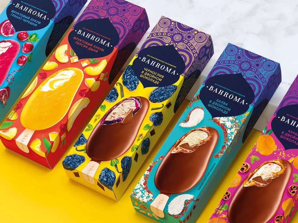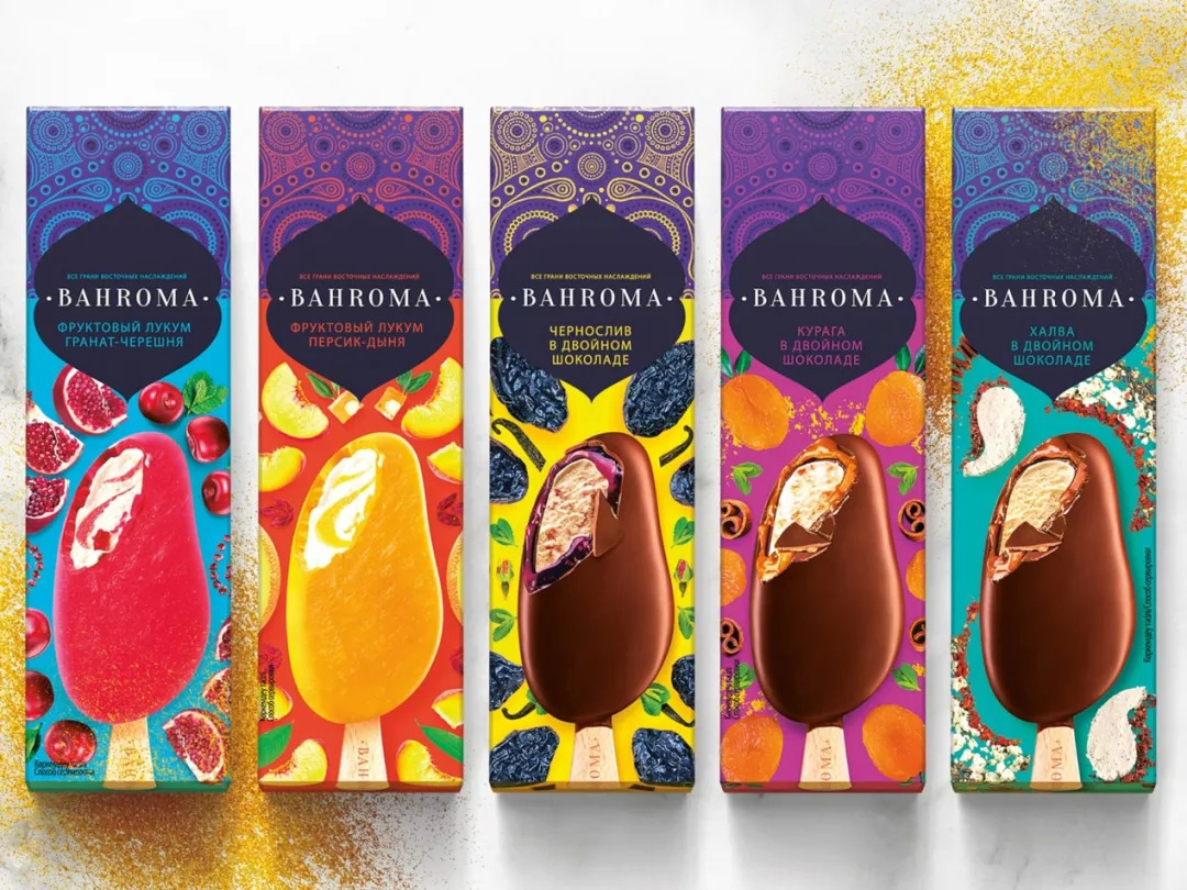 Depot WPF为Bahroma冰淇淋的包装灵感来自丰富多彩、文化多样的亚洲大陆。包装的异域风格时尚设计将传统的东方装饰与世界各地的现代图形相结合,打造出引人注目的冰激凌包装。