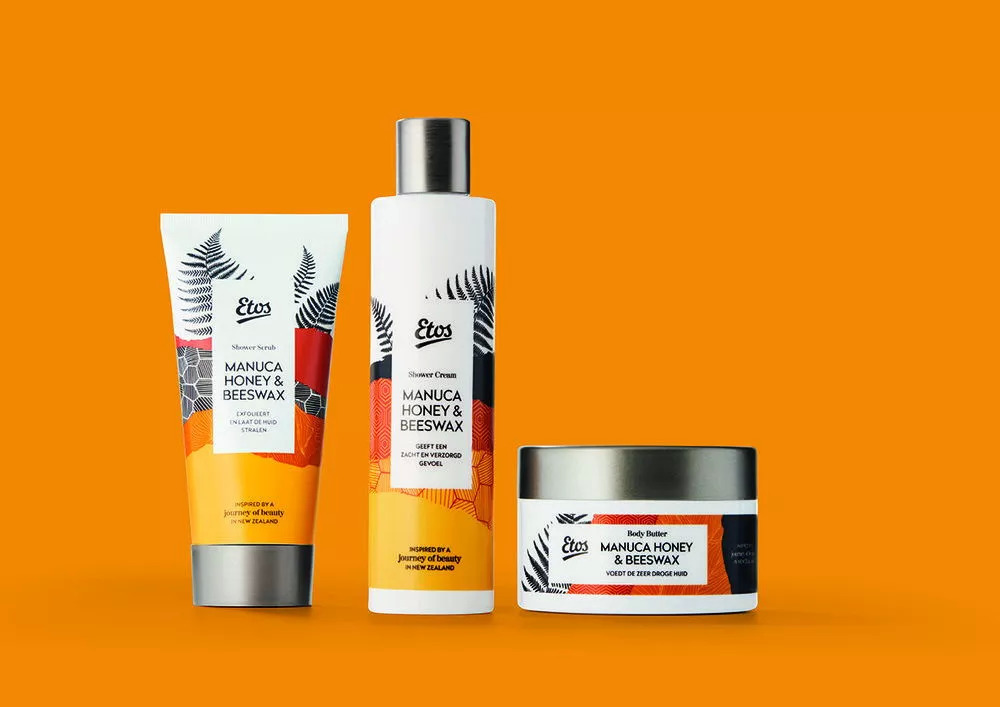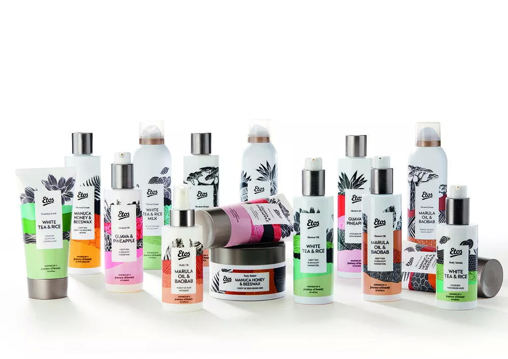 33、Etos Personal Care在包装中融入图形以增强视觉吸引力