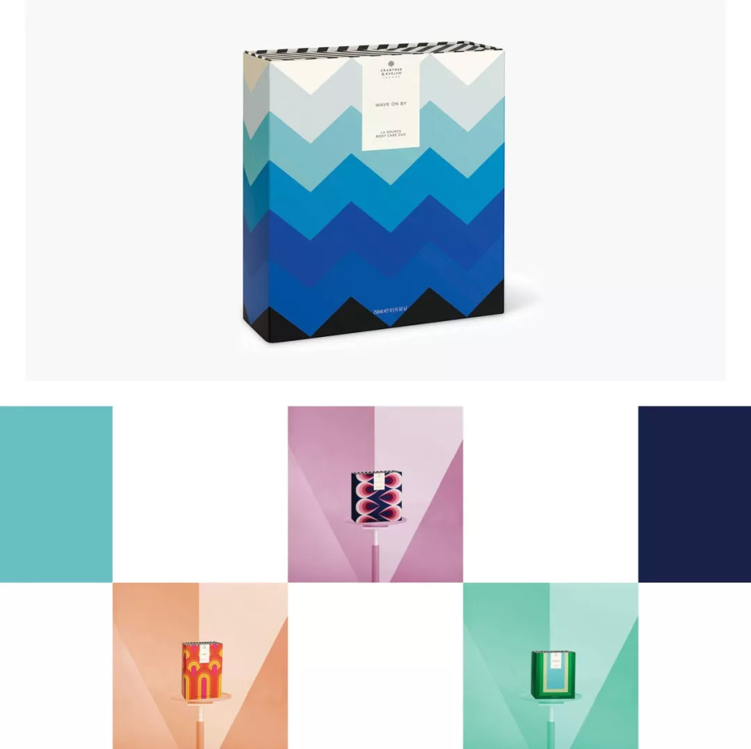 Sibling&Co为瑰珀翠2018年度假系列产品设计了色彩缤纷的包装,并创造出一系列俏皮的复古图案,包括大胆的亮色和对比强烈黑白图案。产品印在哑光纸上,使整个系列充斥着复古的感觉,强烈吸引着拥有相同审美兴趣的消费者。
