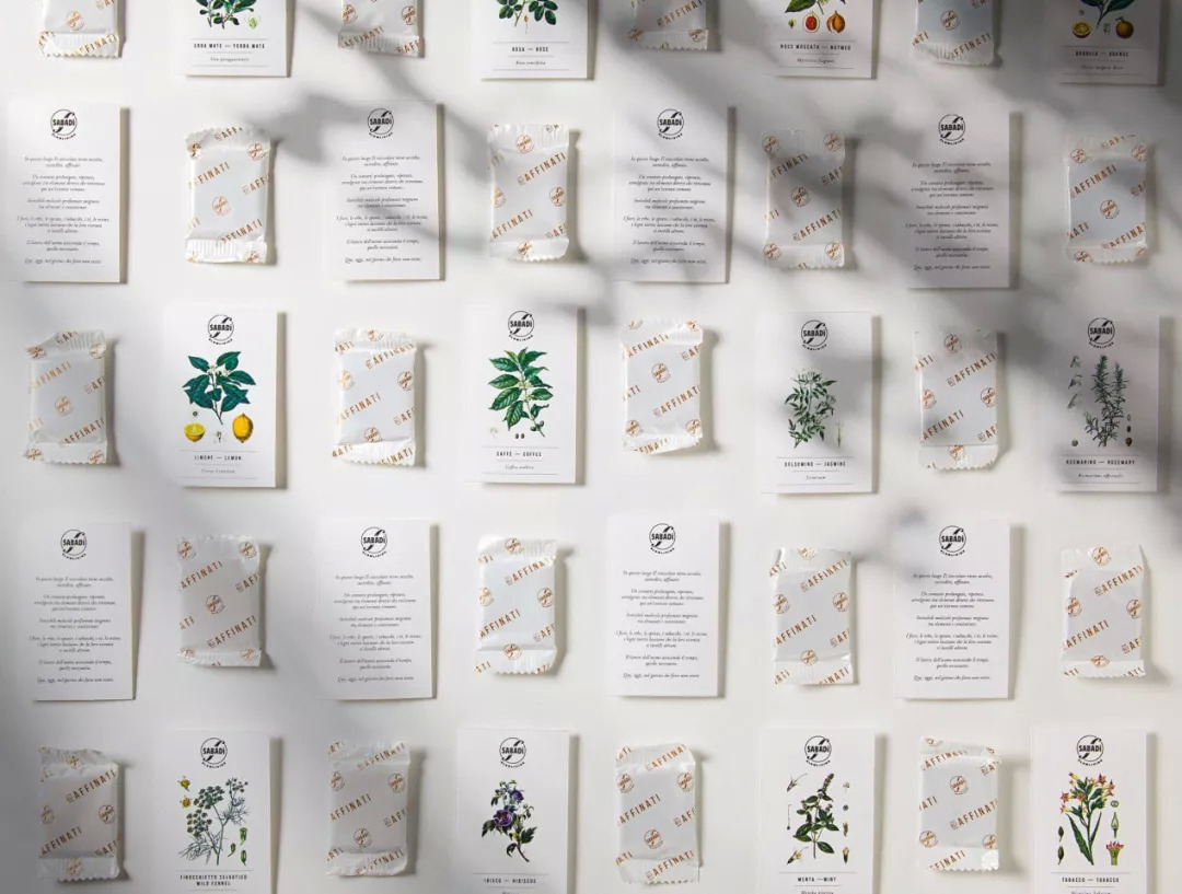 Sabadì通过自然工艺为巧克力带来美妙的香气,由于它的脂肪成分,可可吸收了围绕它的芳香,并长时间保持着这种香气。该系列限量版产品包含7种香味元素,诞生出独特的风味巧克力:烟草,茶,花,草药,香料,树脂和酒。