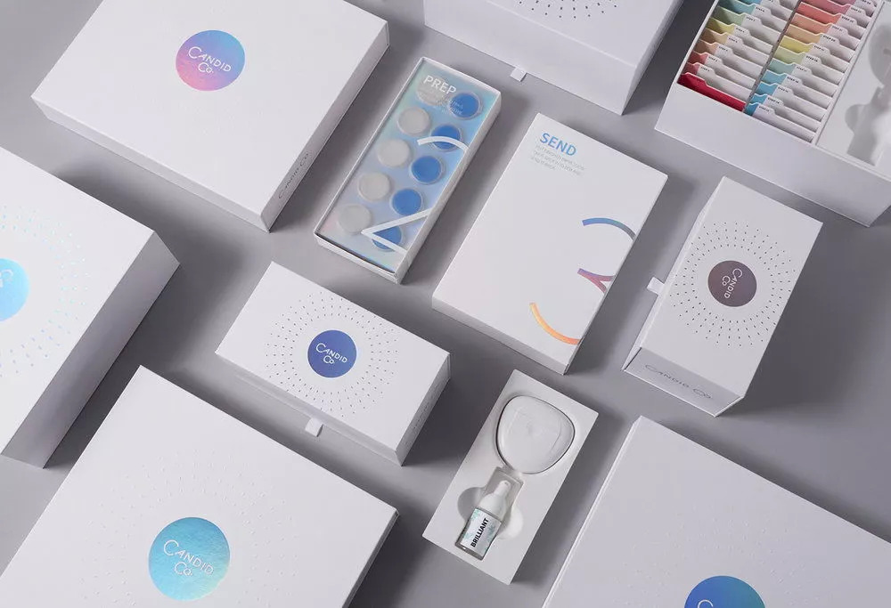 Uneka Concept & Bobby Ghoshal为Candid(牙齿矫正品牌)设计了这个简约而闪耀的包装。考虑到该产品的特殊临床性质,最终包装设计在确保提供基本信息的同时也传达出秩序感。盒子选用优质无涂层纸,在中心位置发光的彩虹色箔片上突出“Candid”标志。设计中的彩虹色细节建立起品牌的独特风格,珠光效果加强整体视觉冲击,并在情感上产生共鸣,传递着这一切美好将带来更多的笑容。