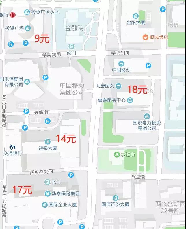 金融街办公楼的地租还有一个明显特正,就是北高南低。