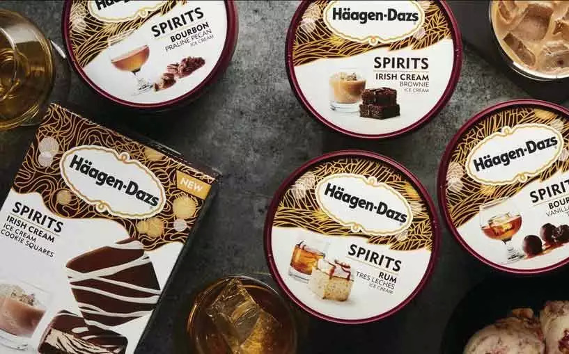 哈根达斯推出了一系列含酒精的冰淇淋产品,即可搭配鸡尾酒食用,亦可单独享用。