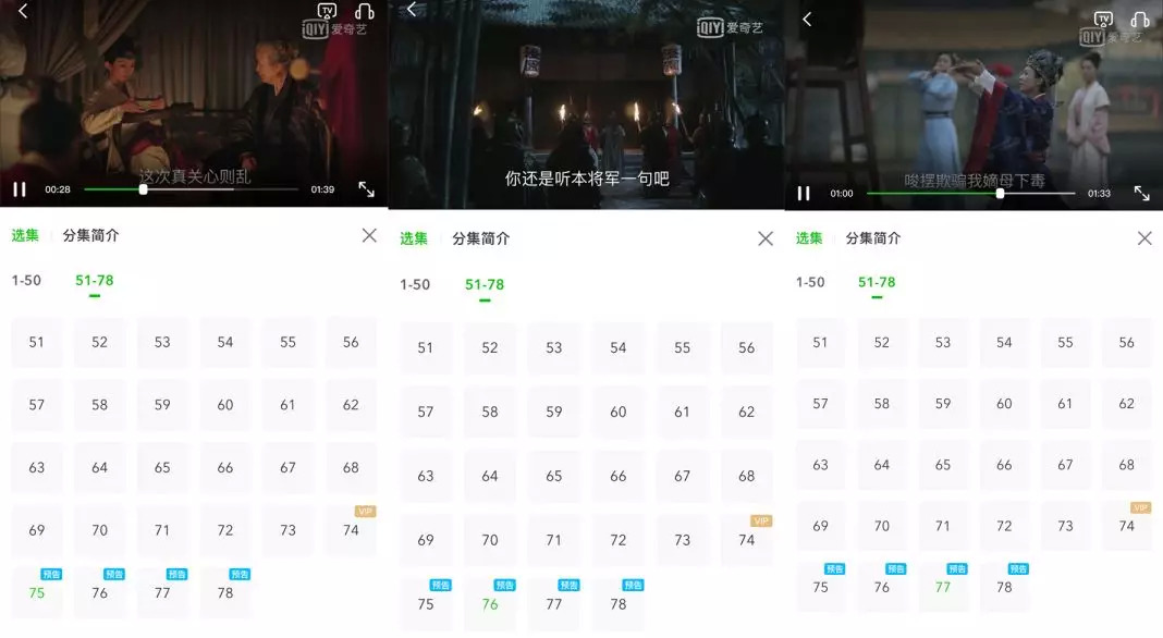 预告集数的错位必然意味着个别平台预告内容的颠倒、混乱,预告虽放了下一阶段的精彩片段,却并非对应集数的真实内容。如在爱奇艺《知否知否应是绿肥红瘦》(以下简称《知否》)的预告内容中75、76集为顾廷烨流放后京城发生叛乱,而77集为盛明兰为夫鸣冤,这显然颠倒了剧情发展顺序。