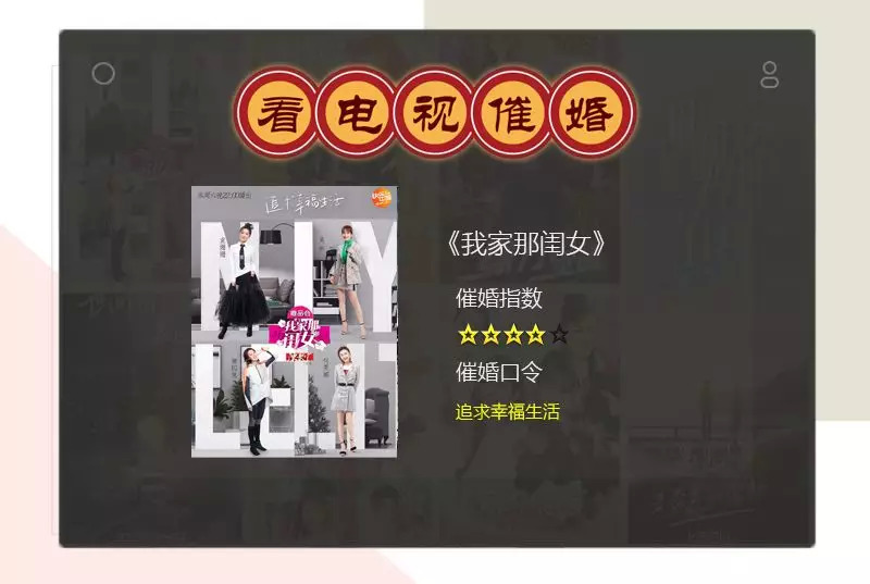 前两天,关于“陪爸妈看非诚勿扰”的话题再次登上了微博热搜,同一个世界,同一个爹妈,一边陪父母看电视的同时,一边还要被父母拉去报名参加节目。