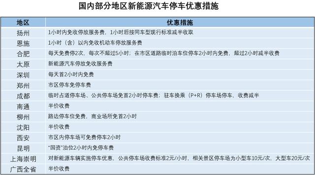 在此之前,湖北恩施、山西太原、四川成都等城市已实施新能源汽车停车费免收政策超过一年。