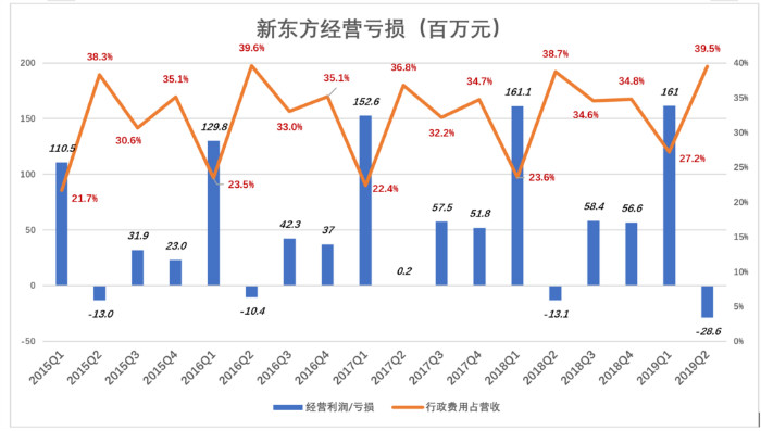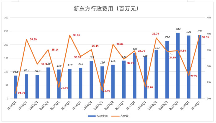 真正影响新东方业绩的是高企的行政费用。