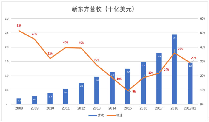 成功上市后,新东方声威大振。2007财年、2008财年营收同比增速分别达到36%和52%。