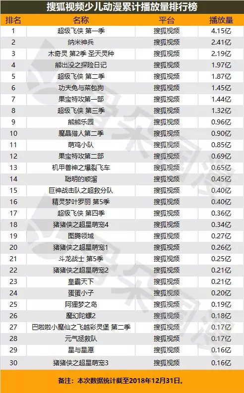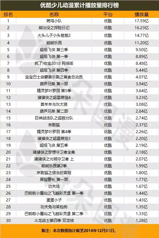 近年来,随着经济水平的发展,婴幼儿同样有了更高层次的消费需求,少儿动画市场也受到越来越多平台的重视,其背后庞大的IP变现蓝海正在被进一步发掘。骨朵国漫盘点了各平台少儿动画累计播放量,以期为2019年准备在这一市场深耕的朋友们提供参考。