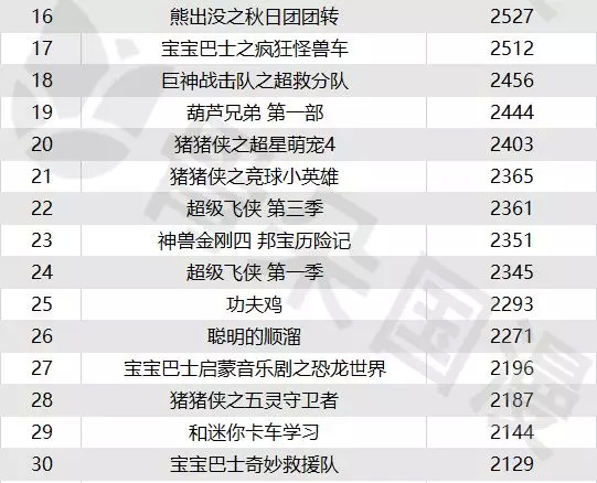 少儿动画累计播放量总榜