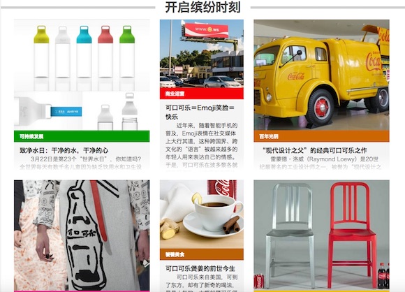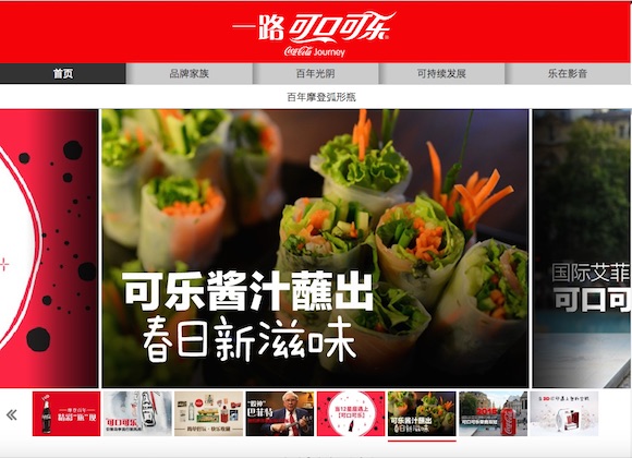 可口可乐在5月8日,也就是这家公司129周年生日的这天,全面改版了它的中国官网“一路可口可乐“,并宣布“跨界传媒”,以电子杂志的形式来展示企业。
