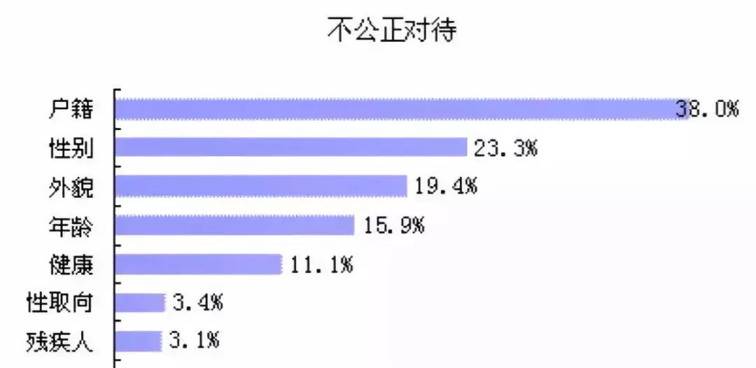 “在职场所遭遇的不公正对待中,性别歧视占 23.3 %名列第二。”