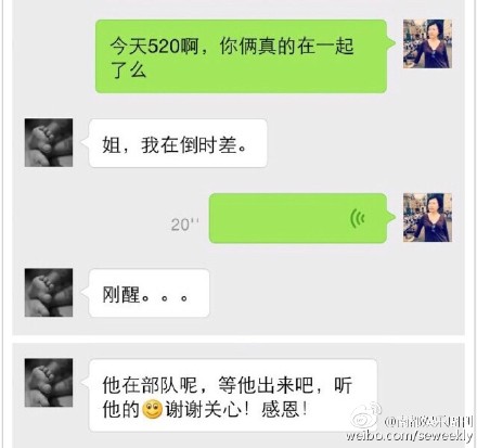 随后,南都娱乐周刊主编谢晓微信张歆艺,得到了张歆艺默认恋情的回复。