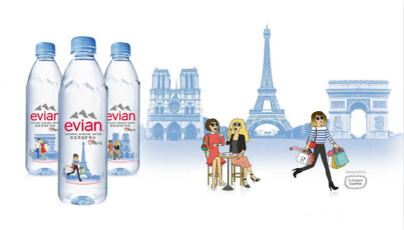 要打造高端水的形象,与时尚界挂钩是再方便不过的了。自2007年起,依云每年都会推出与时尚设计师联名的限量版纪念瓶,合作对象包括王大仁(Alexander Wang)、高缇耶 (Jean Paul Gaultier) 、保罗·史密斯 (Paul Smith) 、黛安·冯芙丝汀宝(Diane von Furstenberg)等时装设计师,效果都不错。最新的2018年限量瓶,是与著名插画师Tiffany Cooper合作的三款限量版巴黎瓶,插图分别向艾菲尔铁塔、凯旋门和巴黎圣母院这些著名的巴黎地标致敬。