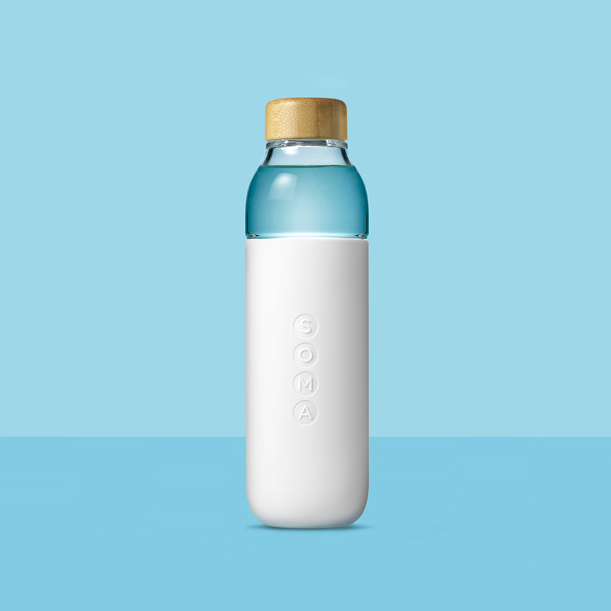 除了与Virgil Abloh合作,依云还找来了滤水器品牌“Soma”。后者被誉为世界上最漂亮的滤水器,品牌本身也强调可循环,这在概念上与依云的需求不谋而合。实际上,依云的这款可回收瓶就是在Soma已有产品的基础上设计的,两者有着相同的规格和外观,也都采用了天然竹子制成的瓶盖。
