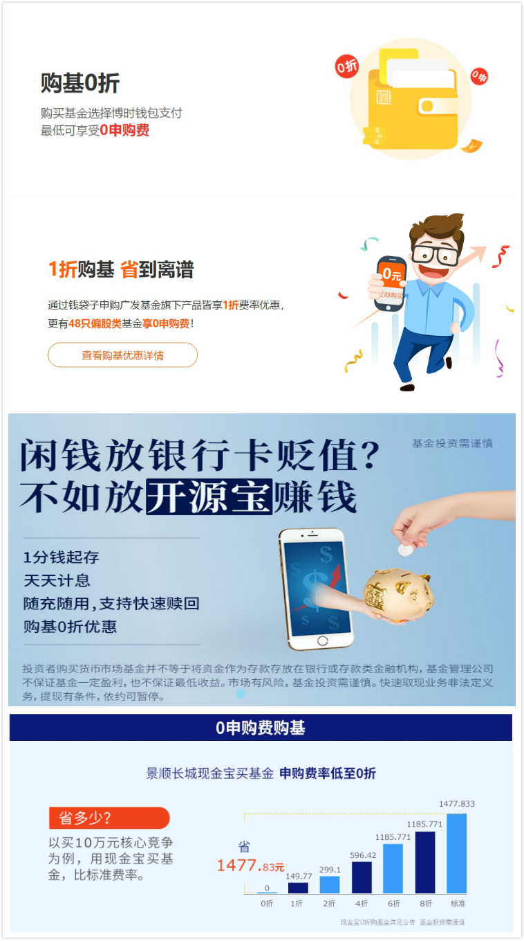 蓝鲸财经浏览各大基金公司官网发现,很多公司的直销费率都达到了0.1折左右,甚至在特殊情况下打出了0折购的优惠。