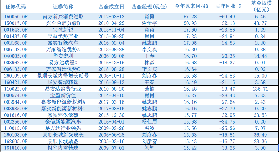 嘉实基金姚志鹏、万家基金李文宾、华安基金王春、易方达基金萧楠、景顺长城刘彦春、前海开源邱杰等基金经理旗下的主动管理型基金涨幅也纷纷超过15%。下表为今年涨幅超15%的主动型基金名单,共31只: