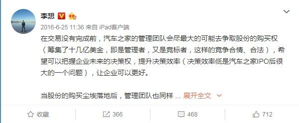 得知此事后,李想发文再三强调秦致是汽车之家三个创业人之一,并指出真爱的才是最受伤的,而汽车之家,是秦致的真爱。