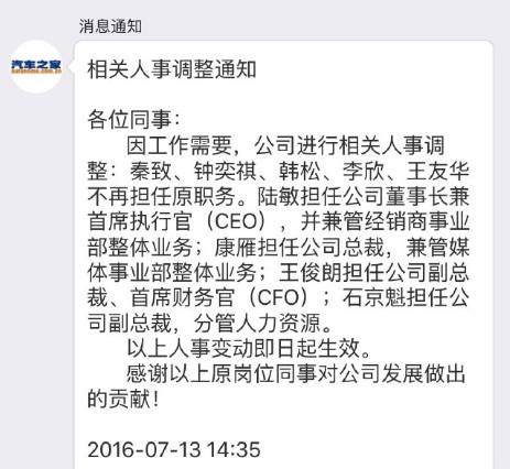 2009年9月,空降汽车之家两年后,秦致被选举为整个公司的CEO。