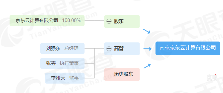 天眼查数据显示,南京京东云计算有限公司注册于1月28日,法定代表人为张雱,其同时担任执行董事,刘强东担任总经理,李娅云为监事,该公司为京东云计算有限公司100%控股公司。京东云计算有限公司共对外投资8家公司,法定代表人均为张雱。