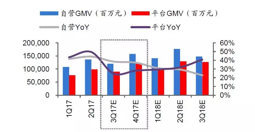 图10:2017下半年平台GMV增速跳水拖累整体增长