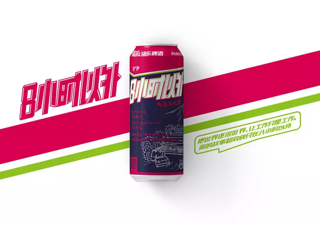受到网红经济的影响,网红抖音同款吉麦芙爱抖音青春鱼仔面、八小时以外啤酒的包装设计直接模仿了社交网络抖音的界面,属于年轻用户会秒懂的图形设计。