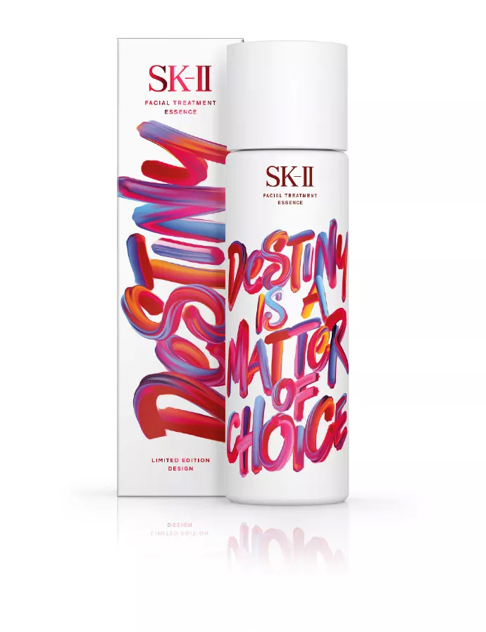 点燃的战袍的色彩主题是高彩度、中明度的强烈色调,适合抓住网络用户的眼球。多组对比色的运用反映了随时会被点燃的对抗情绪。比如SK-II限量涂鸦版神仙水,高彩度的色彩涂鸦,结合“决定成为什么样的人”等立志暖心的文案。以斑斓之姿致敬所有年轻之心,传达“倾听自我,勇敢无畏,相信每个人都可以”的宣言,是这个品牌迄今最为年轻化的包装设计。