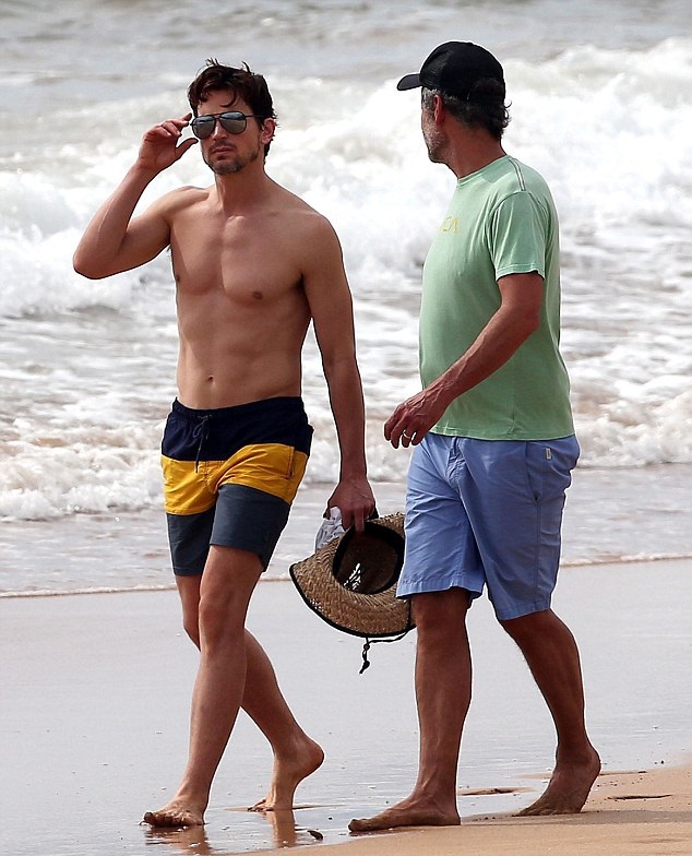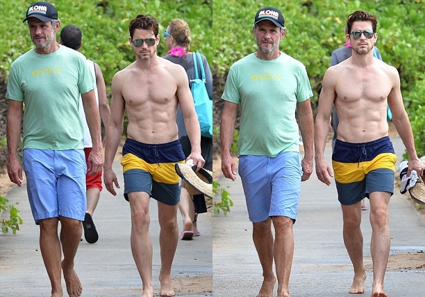 马特▪波莫裸露健美上身与老公Simon Halls漫步夏威夷海滩,共度甜蜜假期。