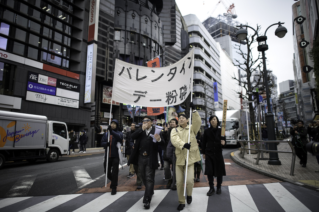 不少日本男性也对商家利用情人节过分鼓动消费文化表示反对。上周六(2月9日),日本“不受欢迎者”联盟(Revolutionary Alliance of Unpopular People)走上东京街头进行第12次年度游行,抗议“浪漫资本主义”。