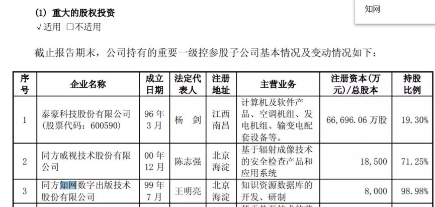 首先,这家上市公司所投资的与“知网”相关的公司一共有5家,分别是:同方知网数字出版技术股份有限公司、山西同方知网数字出版技术有限公司、山西同方知网印刷有限公司、同方知网(北京)技术有限公司、同方知网(美国)技术有限公司。