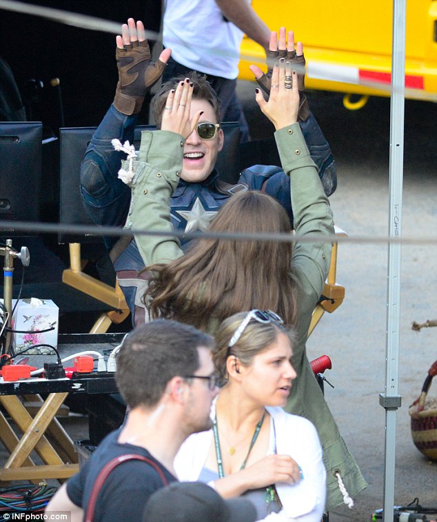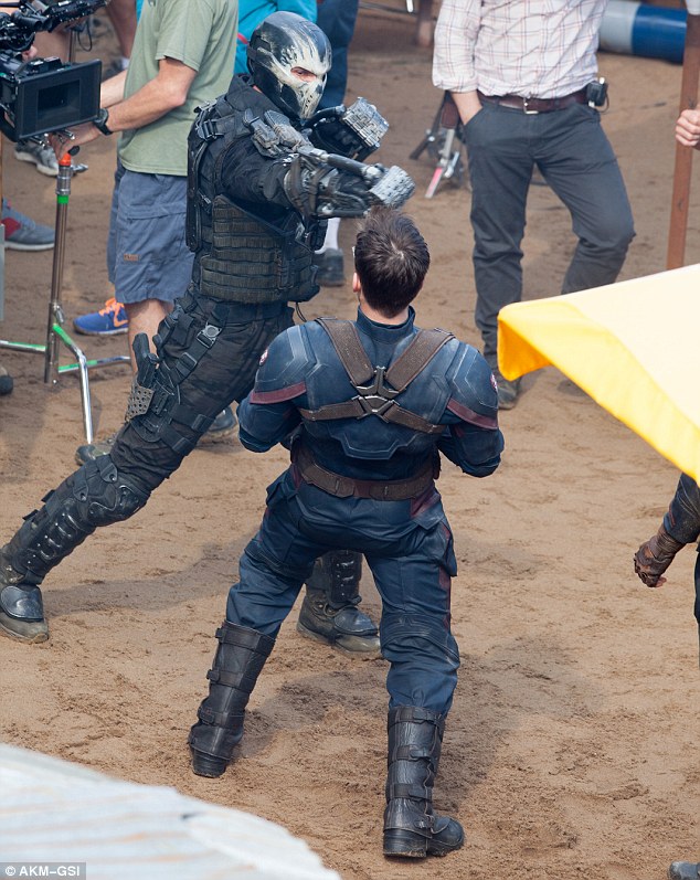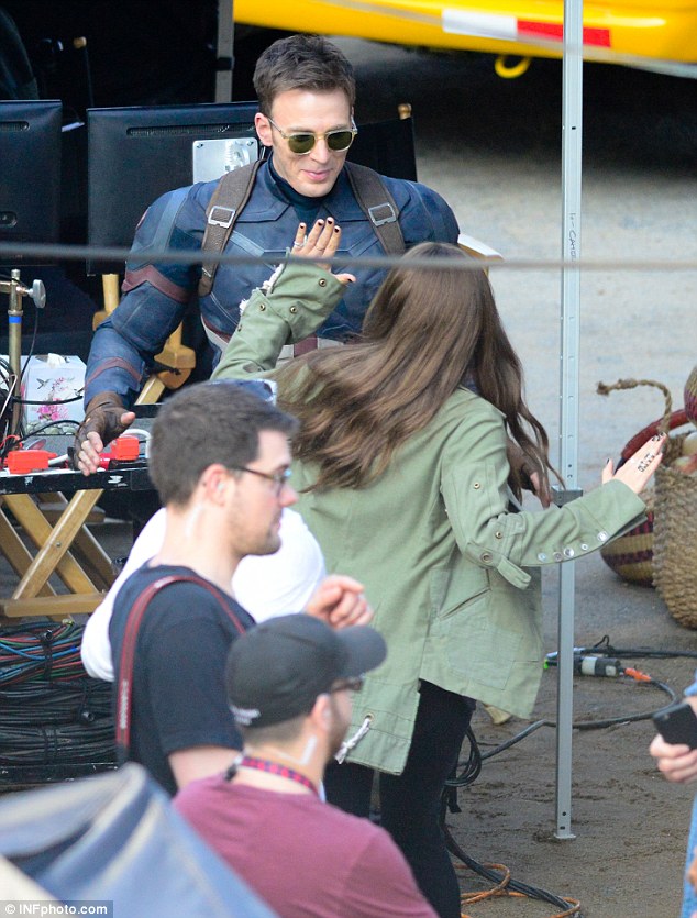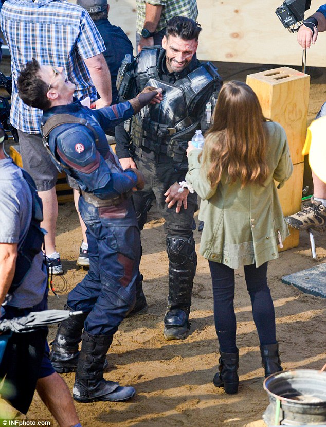 这个悠闲的气氛与星期一发布的片场照截然相反,那时他们正拍摄与敌人的激烈肉搏。格里罗的角色在上一部美国队长系列电影——美国队长:冬日战士中登场,他饰演一位被反派组织九头蛇(HYDRA)安插在神盾局(SHIELD)的卧底。与此同时,奥尔森饰演的女巫并不是片场里唯一一个女性角色,黑寡妇也在进行她的拍摄。