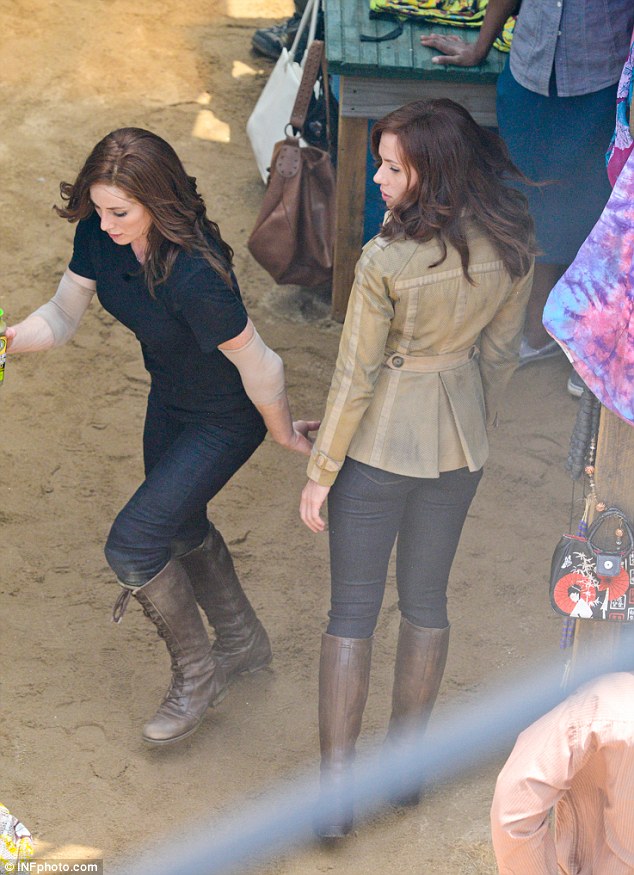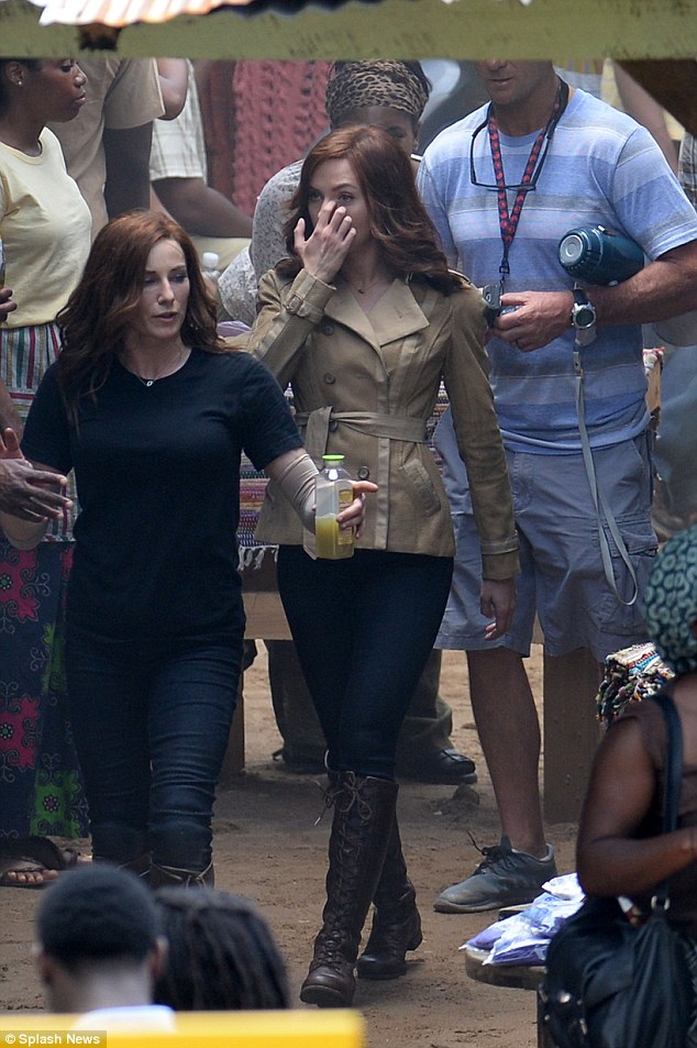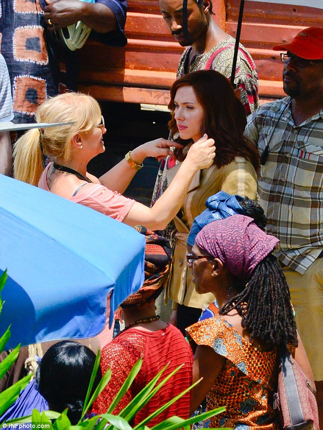 斯嘉丽·约翰逊(Scarlett Johansson)也出现在了美国队长的拍摄现场,她穿着棕色的过膝长靴,黑色的紧身裤和皮衣,当然也少不了黑寡妇标志性的红头发。她看上去也同样卷入了一场难缠的打斗,她身上到处都是尘土——甚至比她的替身演员还要狼狈。