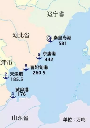 由于国内煤炭分布北多南少,而南北向的煤炭运输能力十分有限(南北大通道蒙华铁路还未真正发挥作用),煤炭大多需要先由西向东运至东部的港口下水,再向南方各省份运输。一直以来,北方煤炭港口基本就是指环渤海的五大港口:秦皇岛港、京唐港、曹妃甸港、天津港、黄骅港,其中尤以秦皇岛港最为重要,是“北煤南运”的中枢,而曹妃甸港则与天津港排名靠后。