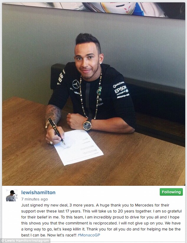 这个消息于当地时间5月20日(星期三)在号称“F1世界冠军的避税天堂”的摩纳哥公布,这周日的F1大奖赛也将在这里举行。汉密尔顿的这份高薪合同给了他相对宽松的个人商业价值自主权,这意味着他的收入还会翻倍,这仅仅是他成为未来的超级富豪的开始。他身上已经有一份瑞士制表商IWC万国表的代言,他还单独与奔驰车师签了一份广告。