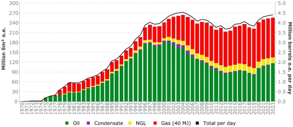 2018年,挪威日平均石油产量为149万桶,较上年的159万桶/日下滑了6.3%,如果与最鼎盛的2001年相比,这个数字只有当时的一半。