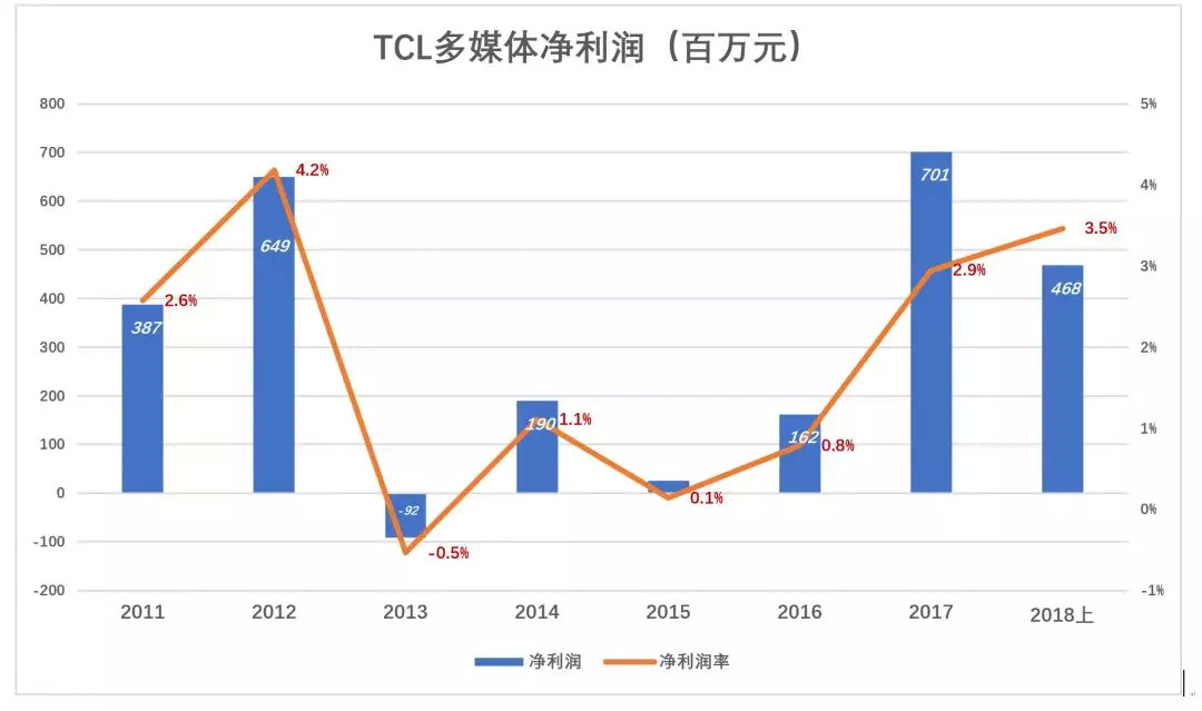 彩电毕竟是TCL起家的业务,虽然走了不少弯路终于还是稳住了阵脚,2017年LCD电视出货量居全球第三、市占率10.9%,净利润7亿,净利润率2.9%。