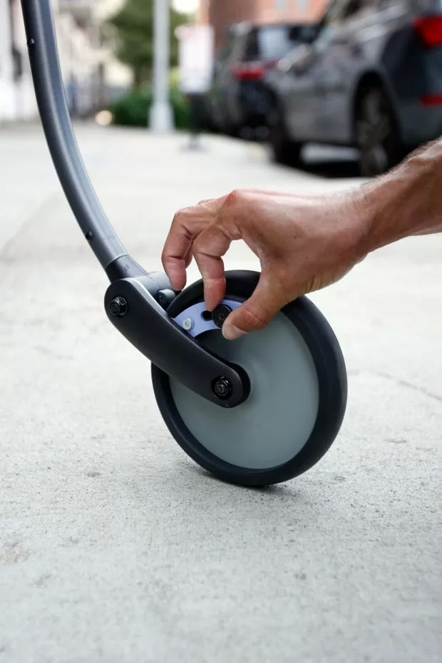 而四轮式易推动、不费力,却又过于笨重,且重心不稳容易失控。