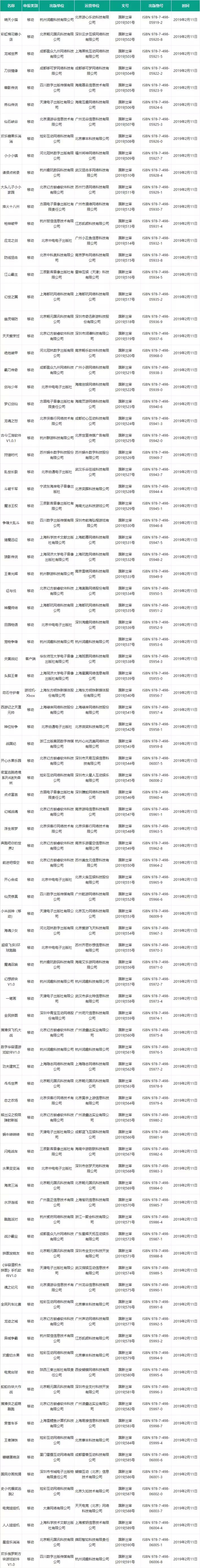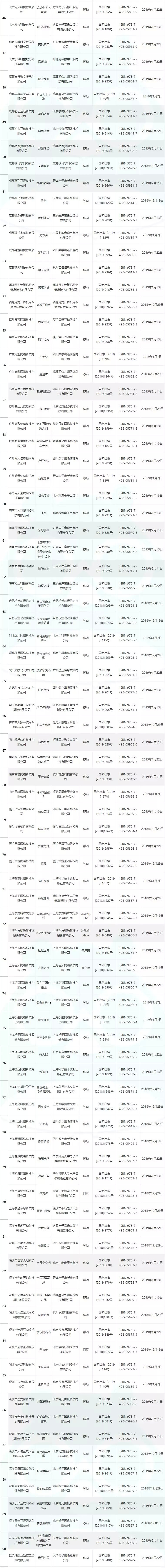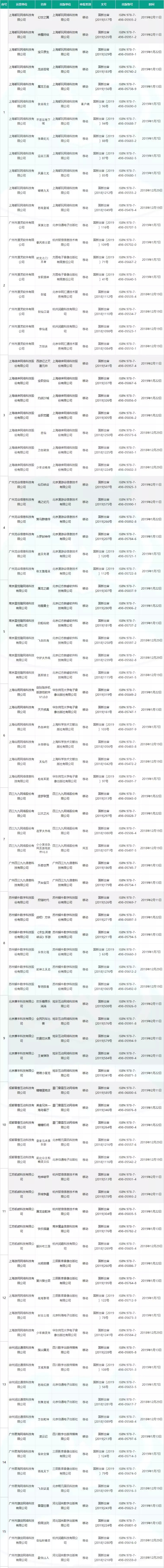 以下为合计六批次过审的产品名单汇总,以运营单位获得版号数量的降序排列(本批次新增产品以深底色区分):