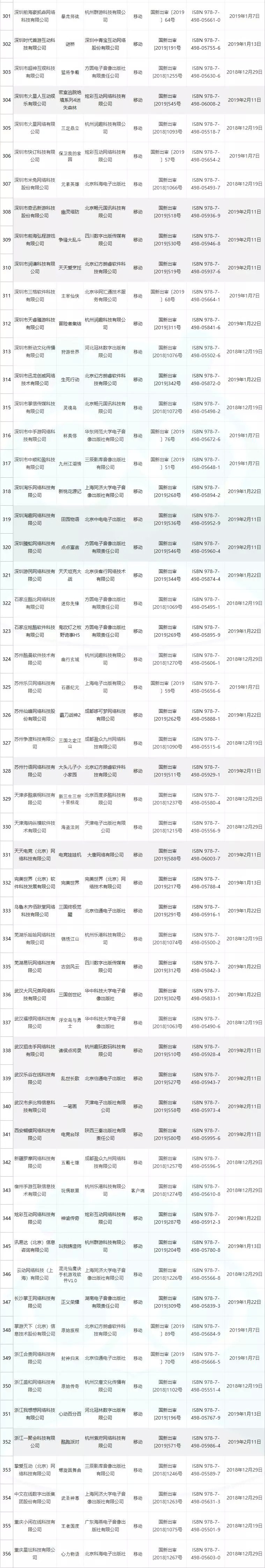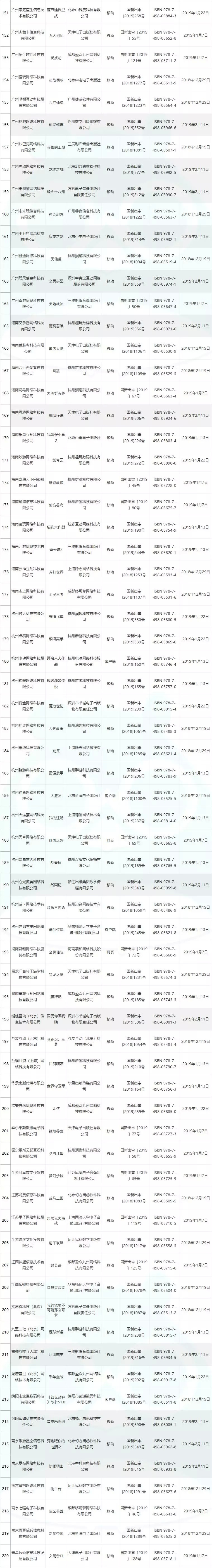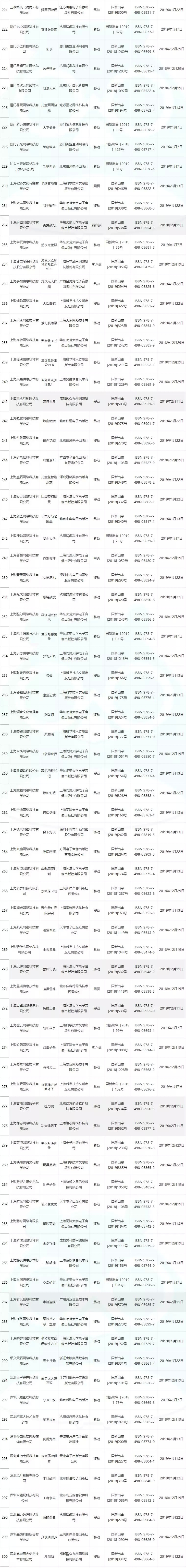 以下为合计六批次过审的产品名单汇总,以运营单位获得版号数量的降序排列(本批次新增产品以深底色区分):