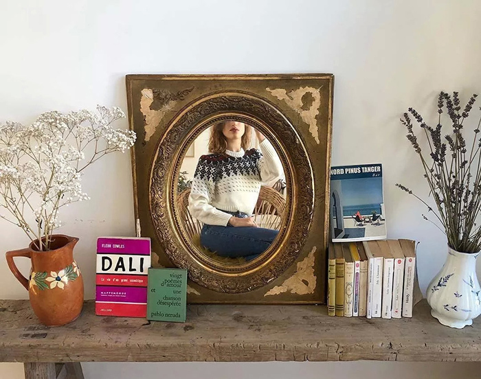 选个高颜值的镜子,画面更美好。法国博主们最爱镶金边镜,复古好看。