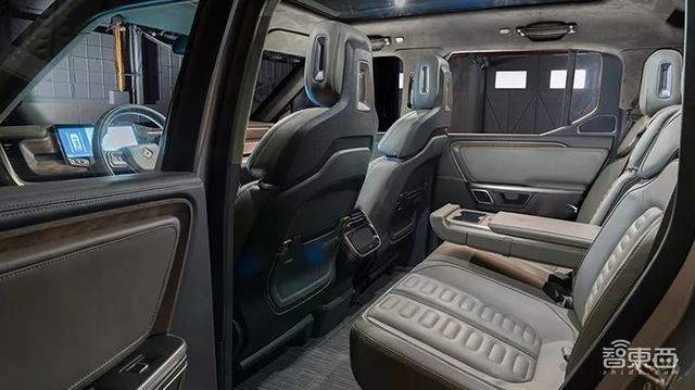 R1T内部搭载有大尺寸全液晶仪表和中控屏幕,数字感较强,而传统汽车档杆位置也空出一部分空间,可以放置背包等物品。