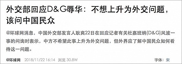 中国消费者一方面对国产品牌的自豪感日益提升,另一方面也将拒绝消费外国品牌以表达愤怒的套路运用得日益娴熟。2018年4月,有消费者爆料称疑在法国巴黎春天百货巴黎世家(Balenciaga)门店遭遇歧视华人的行为。因对巴黎世家的回应态度不满,微博上“抵制巴黎世家歧视华人”话题的阅读量一度激增。意大利奢侈品牌杜嘉班纳(Dolce & Gabanna)因一则涉嫌辱华的广告遭到原定参加上海时装秀的中国模特的集体抵制,被迫取消原定于11月21日的时装秀,且旗下产品在中国电商纷纷下架,抵制余波持续至今。中美贸易摩擦在过去一年持续不断,则将苹果公司置于风口浪尖。去年年底,浙江某公司发布《关于抵制苹果支持华为的通知》引发热议。通知规定,公司及公司员工禁止购买苹果产品,若违反员工将失去晋升机会并取消相应补贴。同时该公司以补贴的方式鼓励员工购买华为产品。