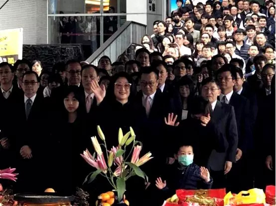 追思音乐会上,严凯泰遗孀、裕隆董事长严陈莉莲最后带领集团决策委员上台,向亲朋好友们致意。